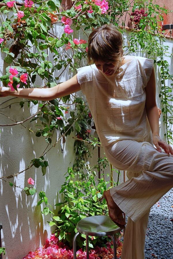 Made from the Panama weave of our beloved Şile cloth, it’s made from the same 100% organic cotton threads just woven in a looser weave. Wide raw cotton waist tie, hits at mid calf.